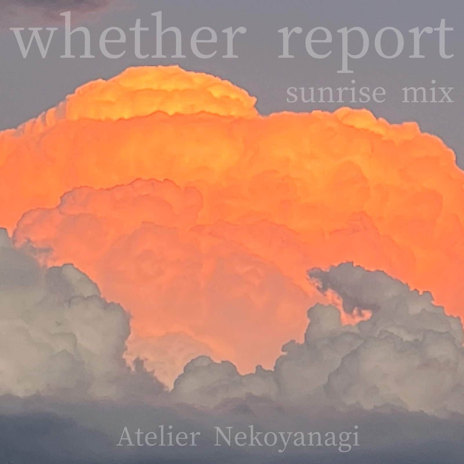 Atelier Nekoyanagi whether report whether report (sunrise mix) サウンドトラック 1曲 / 2025.08 MANEKI whether report... Atelier Nekoya... 4:24 ※ 試聴時間が45秒間の場合がございます。ご了承ください。 空模様の歌、黄昏時の様を表したinstrumental。 配信ストア SHARE LINK! 他のタイトル CYCLE Atelier Nekoyanagi NOTE Atelier Nekoyanagi WAVE Atelier Nekoyanagi Time-Lapse Atelier Nekoyanagi