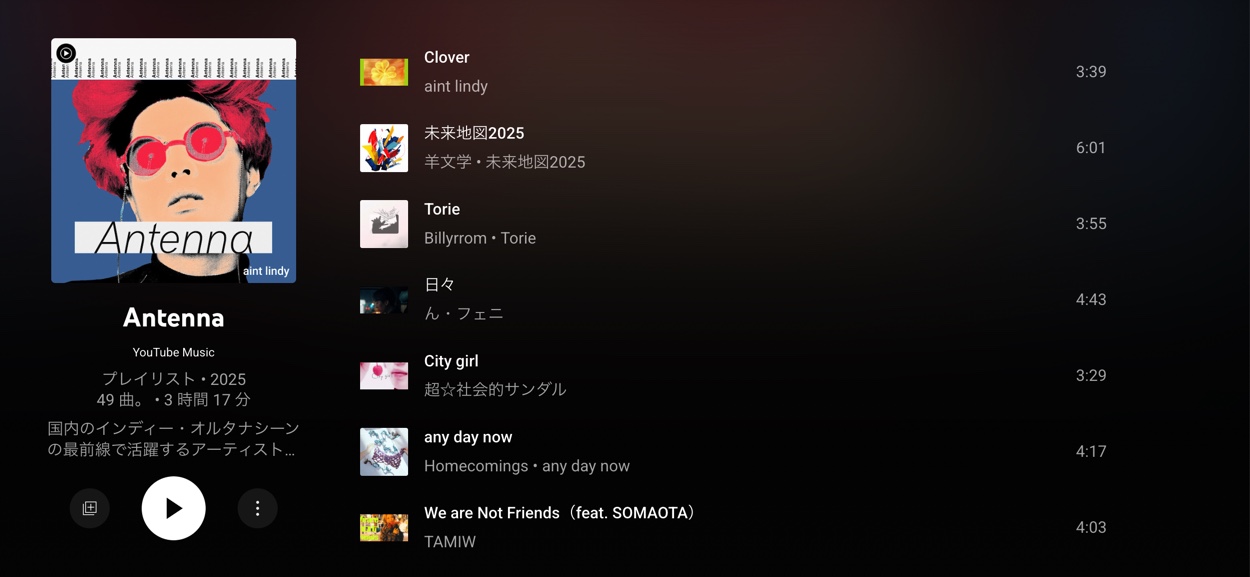 【aint lindy】YouTube Music公式プレイリスト「Antenna」カバーに! 2025.05.26 ニュース BIG UP!から配信されたaint lindyがYouTube Musicの公式プレイリスト「Antenna」にてカバー起用されました! ありがとうございます! 新曲「Clover」と共に、プレイリストも是非チェックしてみてください。 SNSで記事をシェアしよう!